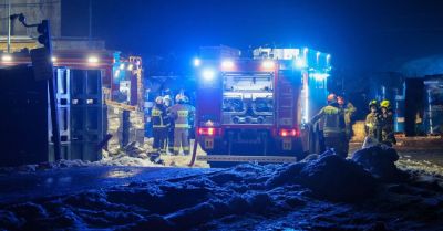 • Strażacy dogaszają pożar hali z odpadami w Nowym Modlinie